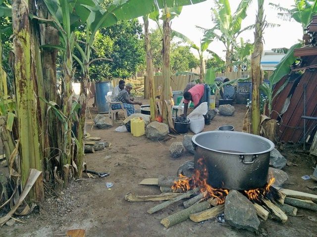 Begonnen haben wir schon 2010 mit einer kleinen Solarversorgung zumindest für Licht und Strom. In eine größere Solaranlage mit Batterien muss sicher noch investiert werden, vor allem damit die Wasserversorgung dann auch umgestellt werden kann. Gekocht wird immer noch auf offenem Feuer mit Holz und Holzkohle, da gibt es im Moment noch keine Alternative, obwohl im Gemeindehaus zumindest eine Küche vorgesehen ist. Eventuell können wir, wenn es die Infrastruktur zulässt, später eine Umstellung auf Gas oder Strom andenken.